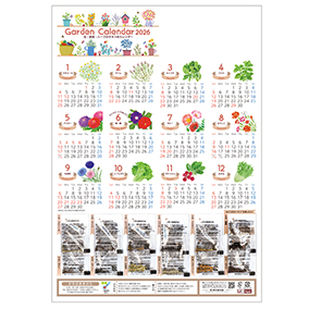 季節ごとに栽培できる、花・野菜・ハーブのタネが12袋付いたカレンダーです。