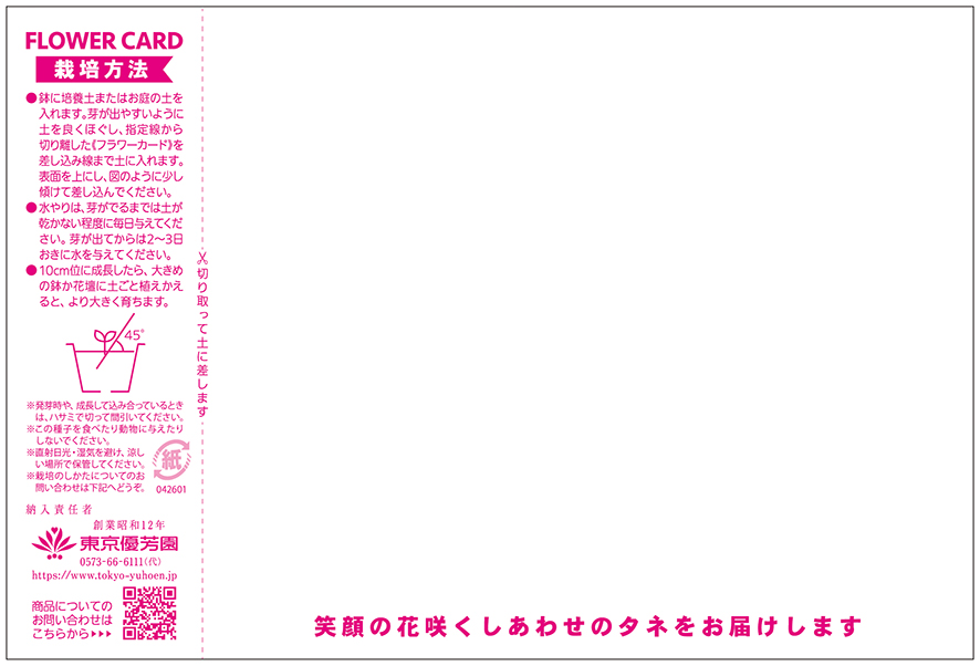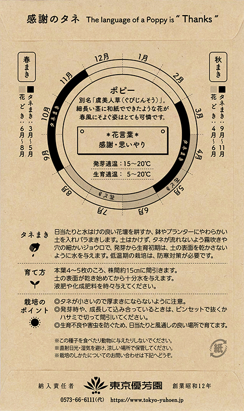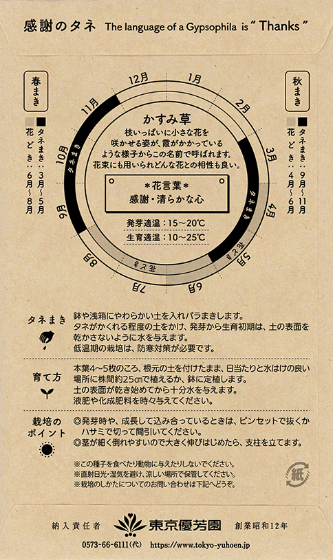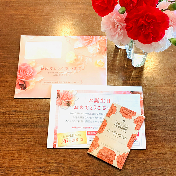 花のタネに添える「ありがとう」の気持ちを贈るグリーティングカード