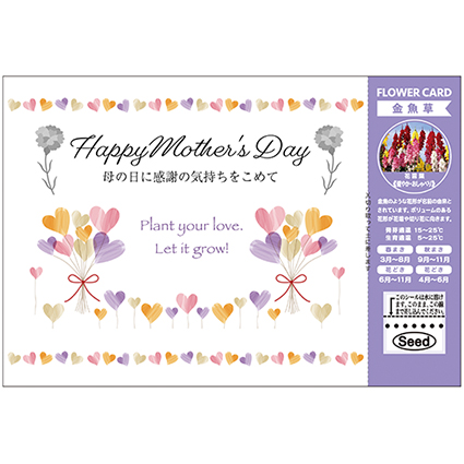ハガキサイズの花のタネ付きメッセージカードです。